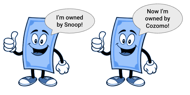 What if we instead structured it to say a certain amount of money — described by a note — HAS an owner? Look up the note, and see who it belongs to.